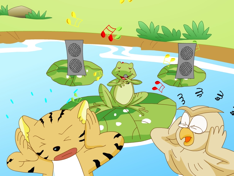 Froggy wants to be a singer, but he is not good at singing.