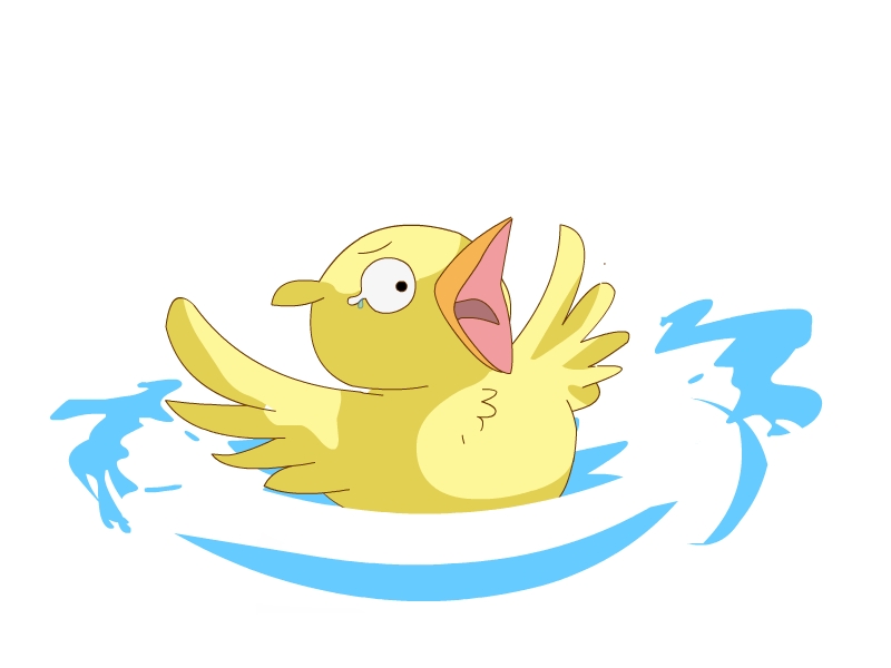 One day, a chick falls into the lake!