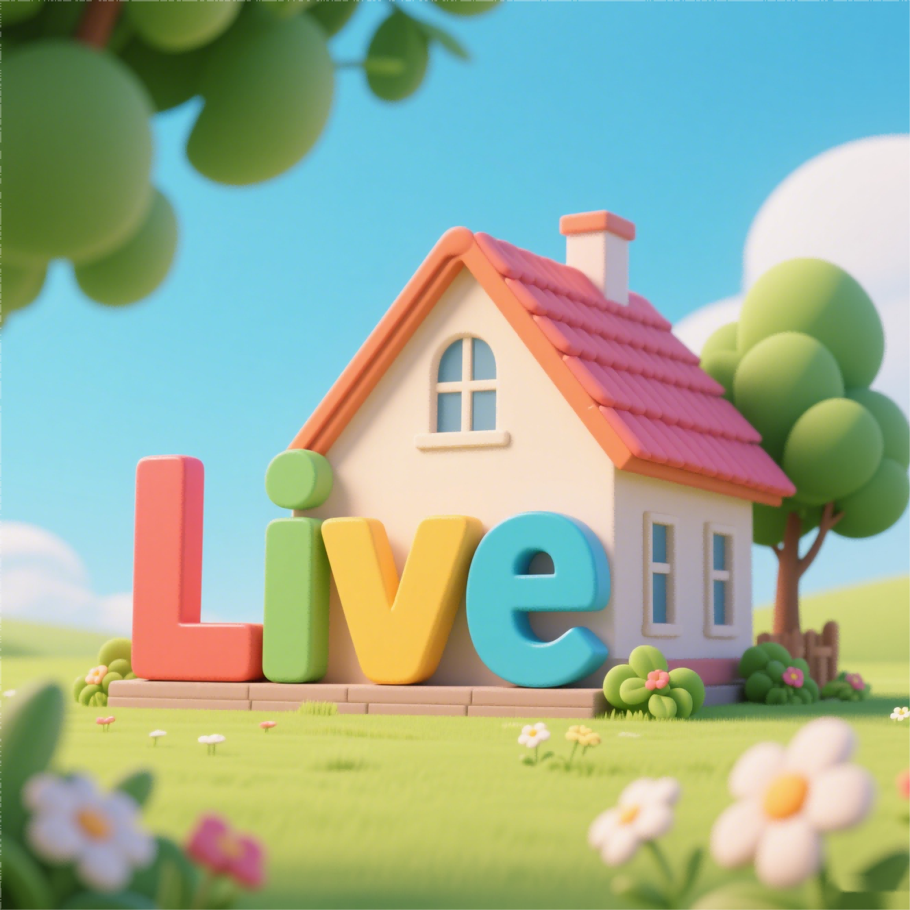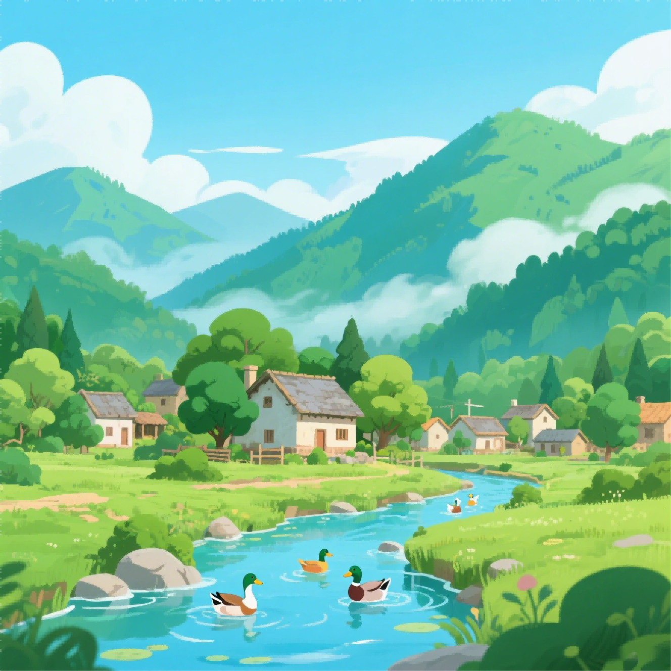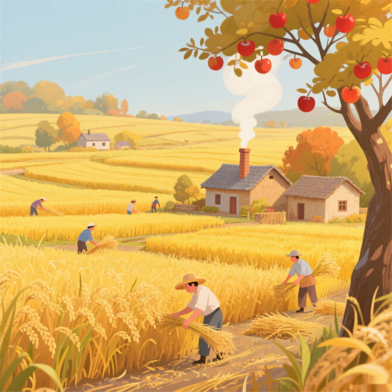 The country: In the country, there are farms. People live in houses.