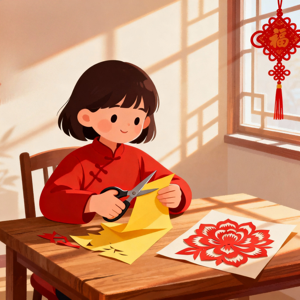 She is in a paper-cutting class.