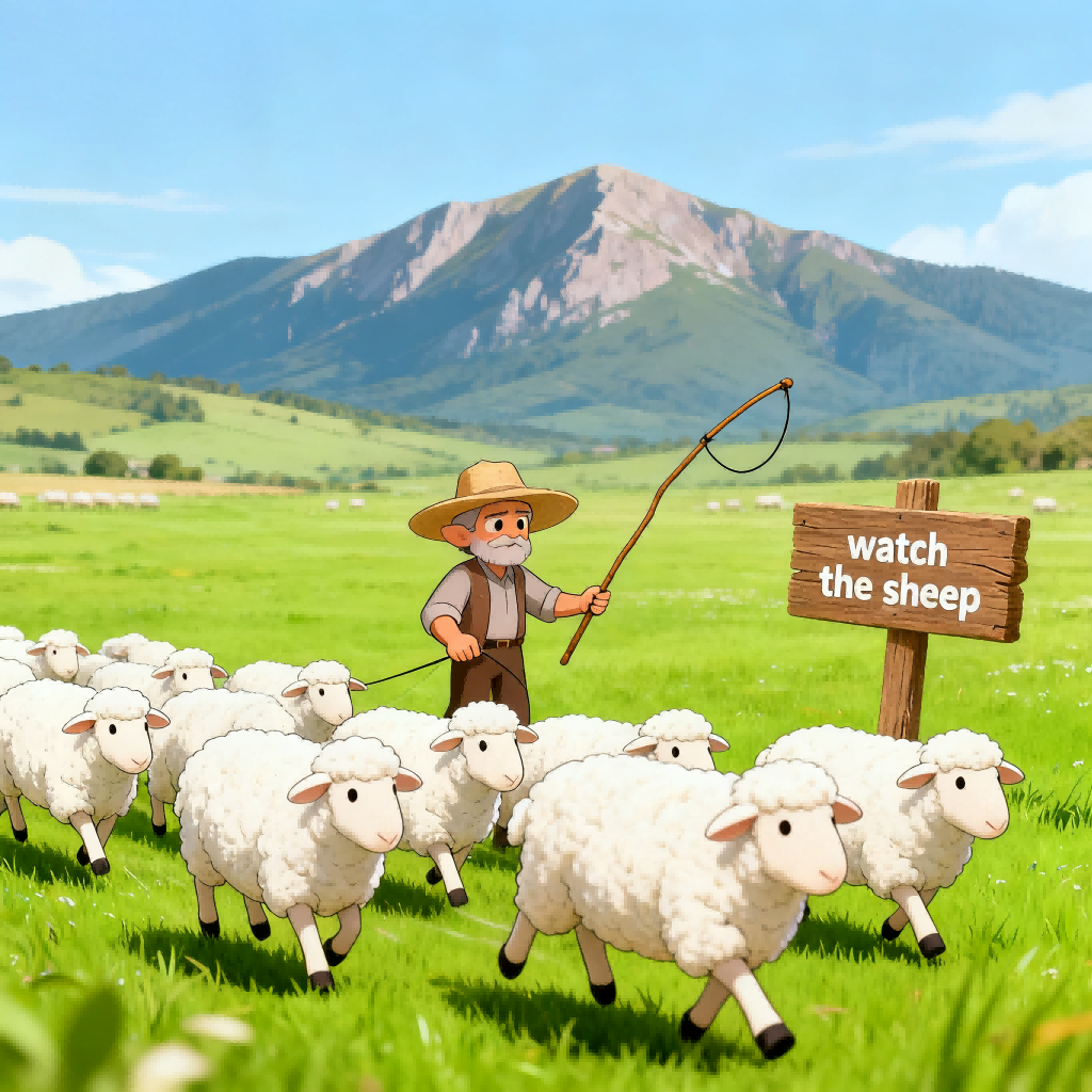 [sɪt ɒn ðə ɡrɑːs]watch the sheep